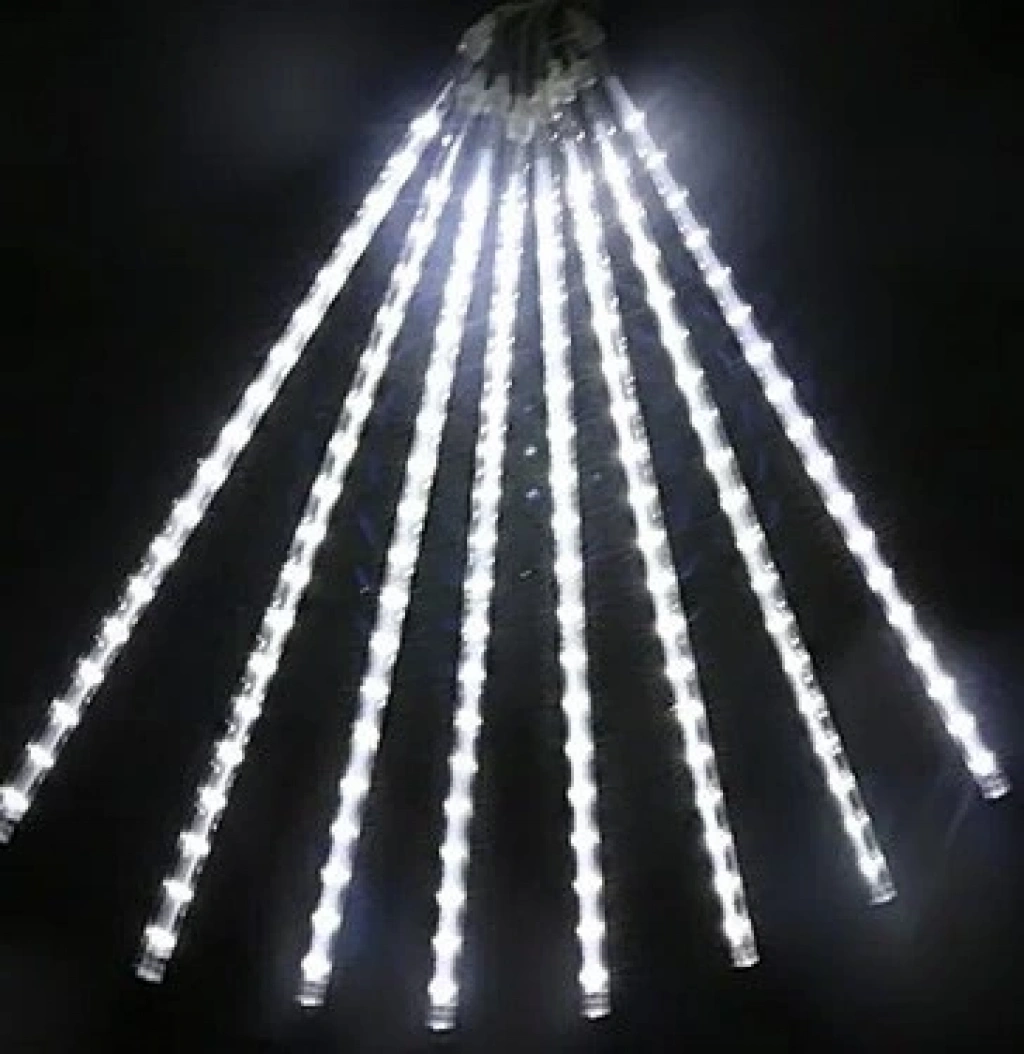 3.2M METEOR LED BEYAZ IŞIKÜrün Özellikleri3.2 metre uzunluğundaki Meteor LED beyaz ışık, yağmur efekti veren özel tasarımıyla dekoratif aydınlatmada göz alıcı bir görünüm oluşturur. Her bir tüpten aşağı doğru akan ışık animasyonu sayesinde özellikle balkon, bahçe, yılbaşı ağacı, vitrin ve etkinlik alanlarında etkileyici bir atmosfer yaratır. Beyaz ışığın ferah ve parlak tonu mekânı modern ve şık bir şekilde aydınlatırken, enerji tasarruflu LED teknolojisi uzun ömürlü kullanım sunar. Şeffaf kablosu sayesinde kullanıldığı alana uyum sağlar ve görüntü kirliliği oluşturmaz. Tak-çalıştır özelliği ile kolay kullanım imkânı sunan bu meteor LED seti, iç ve dış mekân süslemelerinde ideal bir tercih olarak öne çıkar.Paket İçeriği1 Adet 3.2m Meteor Led Beyaz Işık