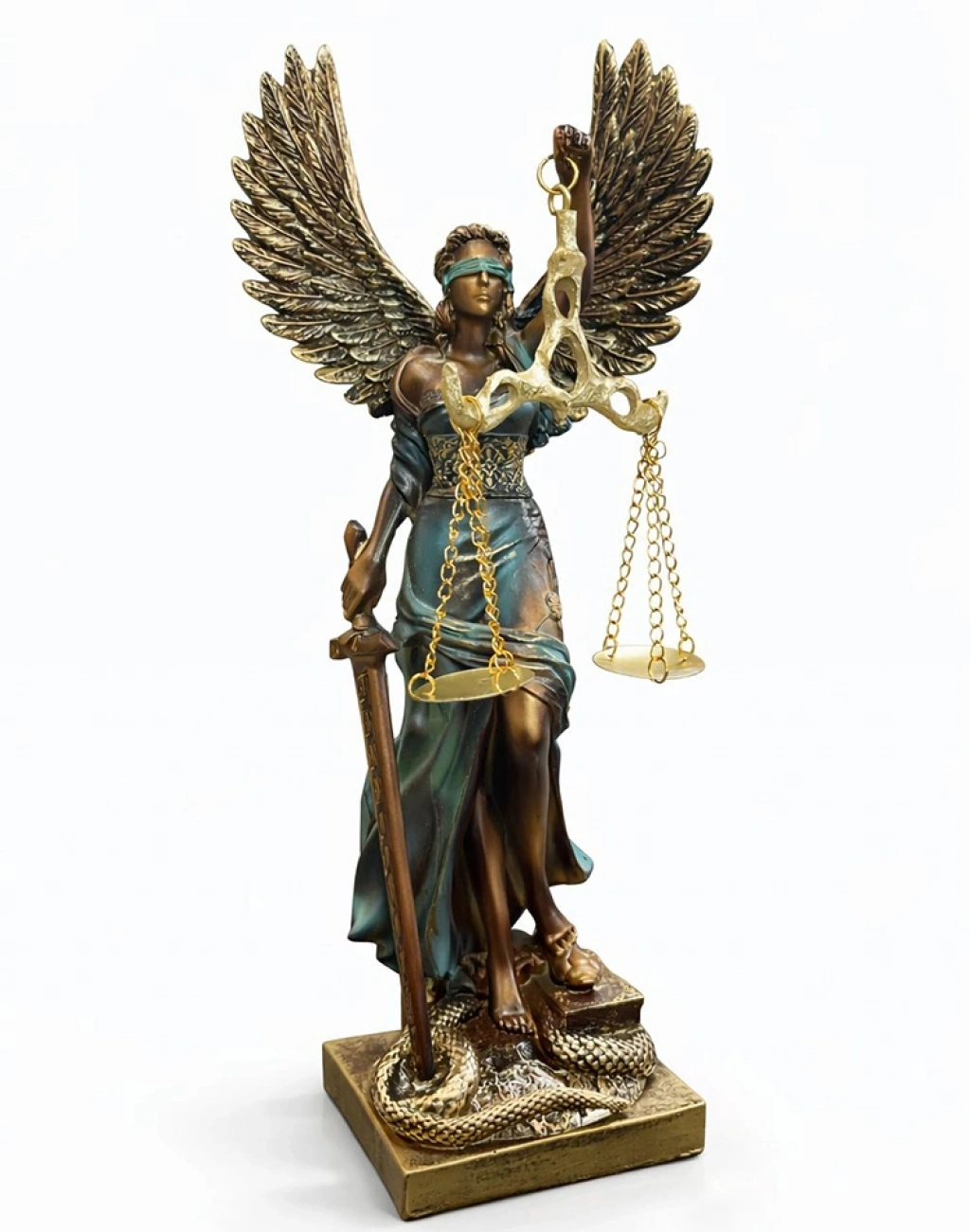 30X9 CM POLYESTER KANATLI ADALET BİBLOSUÜrün Özellikleri30x9 cm Polyester Kanatlı Adalet Biblosu, klasik adalet figürünü kanat detayı ile tamamlayan özel tasarımı sayesinde dekoratif alanlarda dikkat çekici bir duruş sergiler. 30x9 cm ölçülerindeki ideal boyutu ile masa, konsol ve kitaplık üzerinde rahatlıkla konumlandırılabilir. Polyester malzemeden üretilmiş olan kanatlı adalet biblosu, detaylı figür yapısı ve estetik görünümü ile bulunduğu ortama güçlü bir karakter kazandırır. Hukuk büroları ve ofis ortamları için anlamlı bir aksesuar olan polyester adalet figürü, hem sembolik hem de dekoratif bir obje olarak öne çıkar. Kanatlı tasarımı sayesinde klasik modellerden ayrılan dekoratif adalet heykeli, modern ve geleneksel dekorasyon stilleri ile uyum sağlar.Ürün Teknik Özellikleri Özellik Açıklama Ürün Adı 30x9 cm Polyester Kanatlı Adalet Biblosu Boyut 30 x 9 cm Malzeme Polyester Tasarım Kanatlı Adalet Figürü Kullanım Alanı Ofis, Hukuk Bürosu ve Dekoratif Alanlar Paket İçeriği1 Adet 30x9 cm Polyester Kanatlı Adalet Biblosu