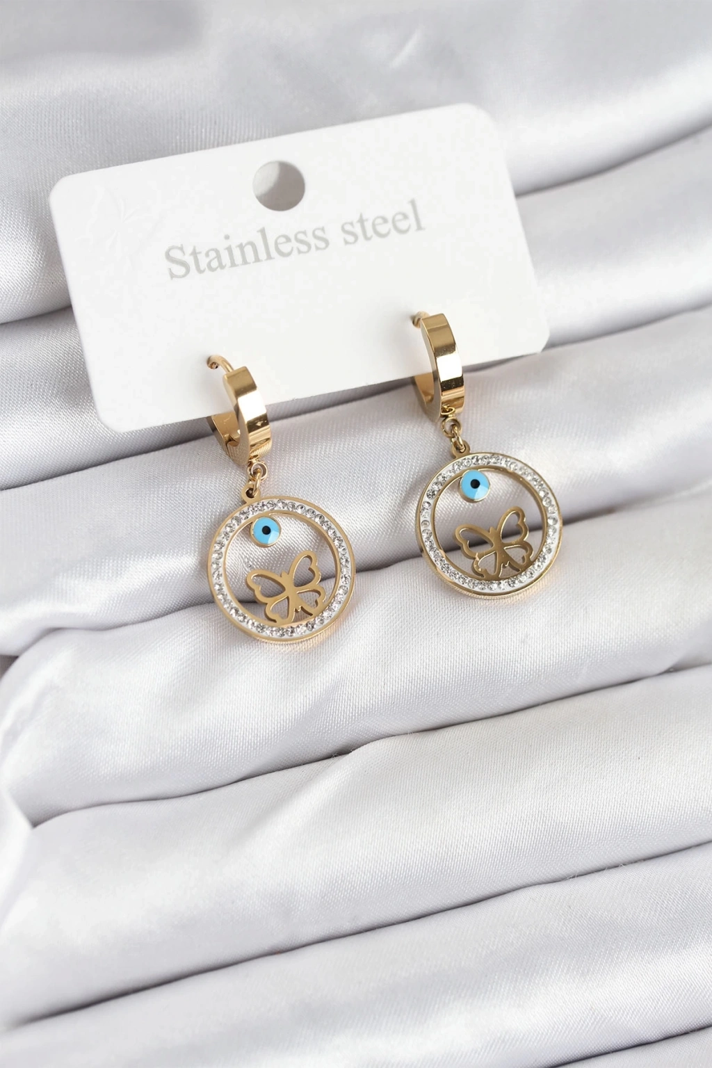 316L Çelik Halka Kelebek Kadın Küpe