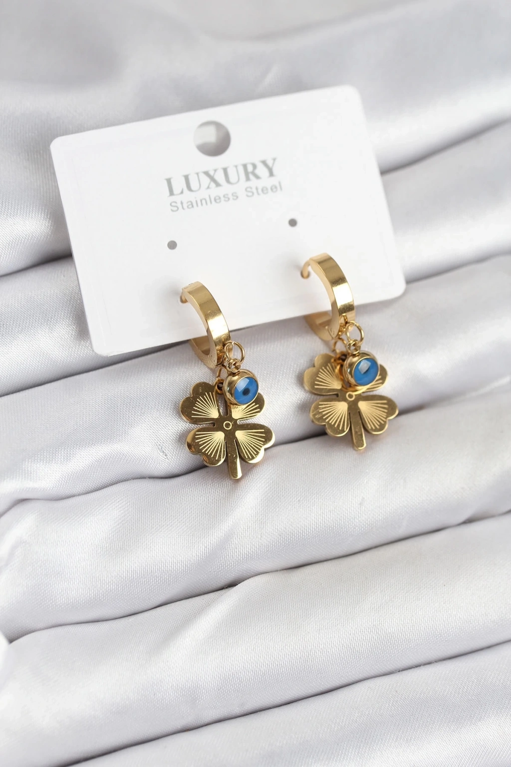 316L Çelik Nazarlı Yonca Model Kadın Küpe