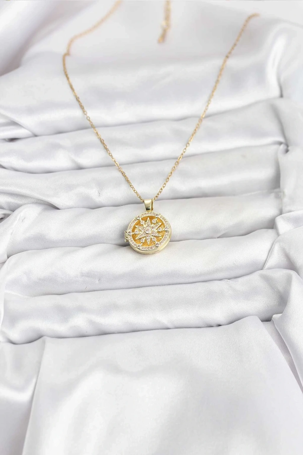 316l Çelik Zincir Gold Renk Kutup Yıldızı Kapaklı Model Kadın Kolye