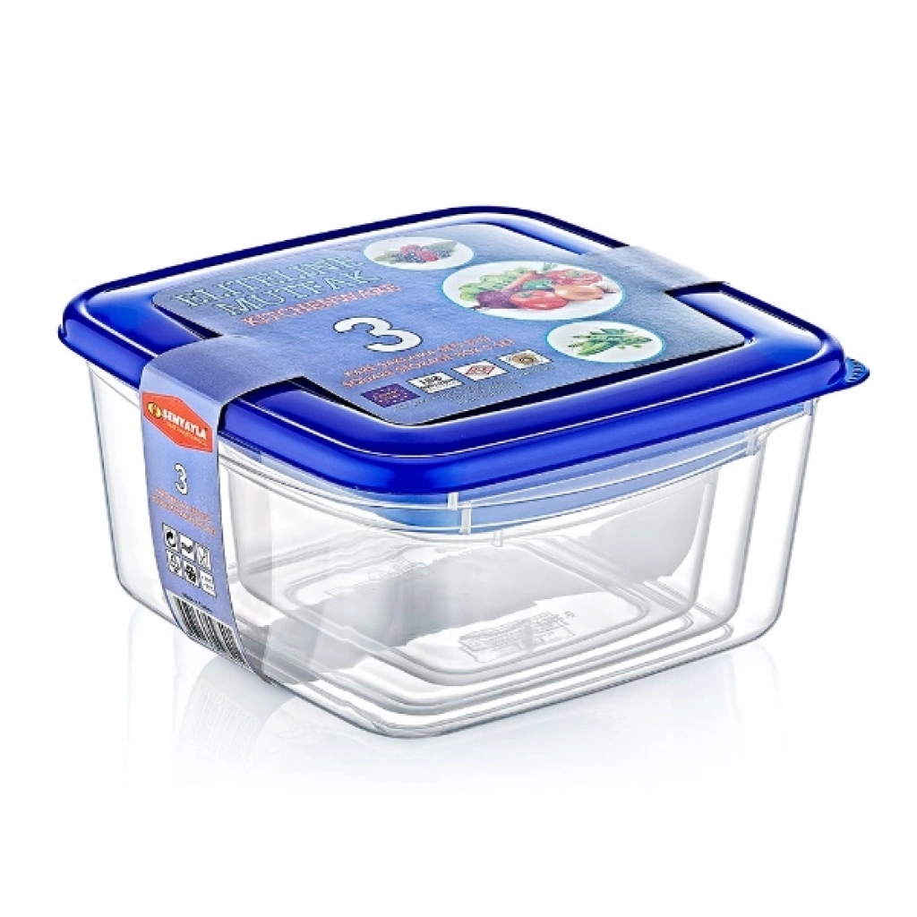 3'LÜ KARE SAKLAMA KABI SETİÜrün ÖzellikleriMutfakta düzeni ve hijyeni bir arada sunan 3'lü Kare Saklama Kabı Seti, farklı boyutlara sahip üç ayrı kap ile pratik bir saklama kabı seti çözümü sunar. Set içerisinde 14x14x7 cm, 17x17x8 cm ve 20x20x10 cm ölçülerinde üç adet kare formda kap bulunur. Şeffaf gövde tasarımı sayesinde içerik kolayca görülebilir ve bu sayede dolap içi düzen daha kontrollü hale gelir. Sızdırmaz özellikteki mavi kapakları, hava girişini minimuma indirerek gıdaların tazeliğini korumaya yardımcı olur. Dayanıklı ve BPA içermeyen plastik malzemeden üretilmiş olup gıda ile temasa uygundur. Hem buzdolabında hem de mutfak dolaplarında güvenle kullanılabilen kare saklama kabı tasarımı, alanı verimli kullanmanıza katkı sağlar. İç içe geçebilen kompakt yapısı sayesinde yer tasarrufu sunar ve yemek, salata, meyve, kahvaltılık ya da kuru gıdalar için hijyenik bir gıda saklama çözümü oluşturur. Piknik ve seyahatlerde de pratik kullanım avantajı sağlar.Ürün Teknik Özellikleri Özellik Açıklama Ürün Adı 3'lü Kare Saklama Kabı Seti Adet 3 Parça Set Ölçüler 14x14x7 cm / 17x17x8 cm / 20x20x10 cm Malzeme BPA içermeyen plastik Kullanım Alanı Buzdolabı, mutfak dolabı ve piknik kullanımı Paket İçeriği3 adet farklı boyutta kare saklama kabı
