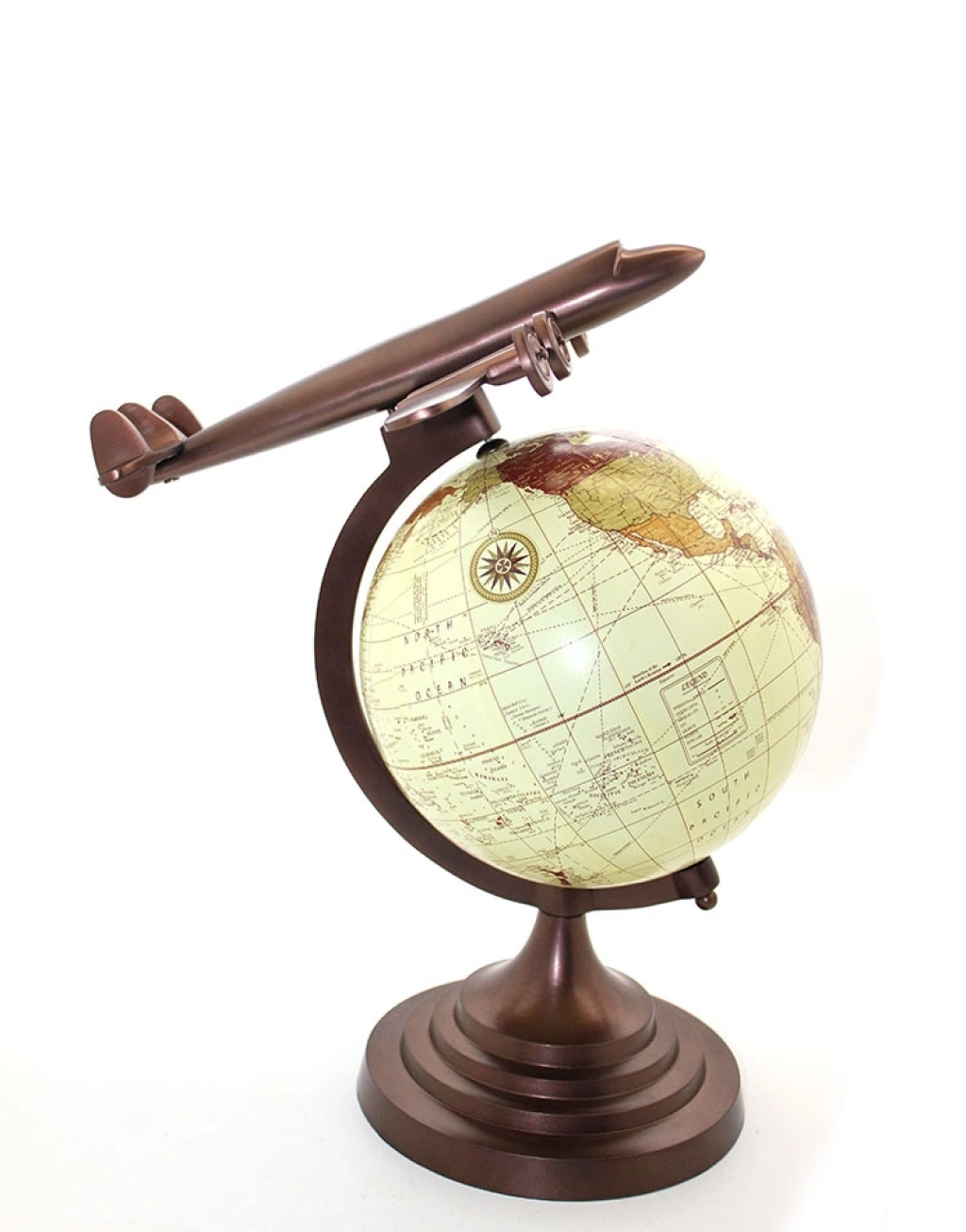 40X25 CM PİRİNÇ UÇAK TASARIMLI DÜNYA KÜREÜrün Özellikleri40x25 cm Pirinç Uçak Tasarımlı Dünya Küre, büyük boyutları ve görkemli duruşuyla mekanlarınıza prestij katan, keşif tutkusunu sanatsal bir tasarımla birleştiren özel bir dekorasyon objesidir. 40 cm yüksekliğindeki heybetli yapısı, üzerinden geçen zarif uçak figürüyle birleşerek klasik bir dünya küresine dinamik ve modern bir yorum getirir. Pirinç görünümlü kaliteli malzeme kullanılarak üretilen stand ve uçak bölümü, antik bakır ve pirinç tonlarının ağırlığını yansıtarak bulunduğu ortama nostaljik bir derinlik katar. Kürenin üzerindeki detaylı ve okunaklı harita grafikleri, coğrafi keşiflerin büyüleyici atmosferini ofis veya ev dekorasyonunuza taşır. Yüksek kaliteli işçiliği ile ön plana çıkan bu büyük boy dünya küresi, dayanıklı metal ayak yapısı sayesinde kütüphanelerden geniş yönetici masalarına kadar her alanda güvenle sergilenebilir. Hem havacılık meraklıları hem de vizyon sahibi sevdikleriniz için unutulmaz bir hediyelik eşya seçeneği olan bu ürün, estetik çizgileriyle kaliteyi ve lüksü bir arada sunar. Odak noktası oluşturma gücü yüksek olan bu uçaklı küre biblosu, dekorasyonunda fark yaratmak isteyenler için tasarlanmıştır.Ürün Teknik ÖzellikleriÖzellikAçıklamaÜrün Adı40x25 cm Pirinç Uçak Tasarımlı Dünya KüreBoyut40x25 cm (Büyük Boy)MalzemePirinç Görünümlü Metal ve Dayanıklı Küre YapısıTasarımUçak Figürlü – Kademeli Antik StandlıRenkPirinç / Antik Bronz ve Klasik Harita TonlarıStilKlasik / Vintage / Prestij DekorasyonKullanım AlanıYönetici Odası, Ofis, Salon, KütüphanePaket İçeriği1 Adet 40x25 cm Pirinç Uçak Tasarımlı Dünya Küre