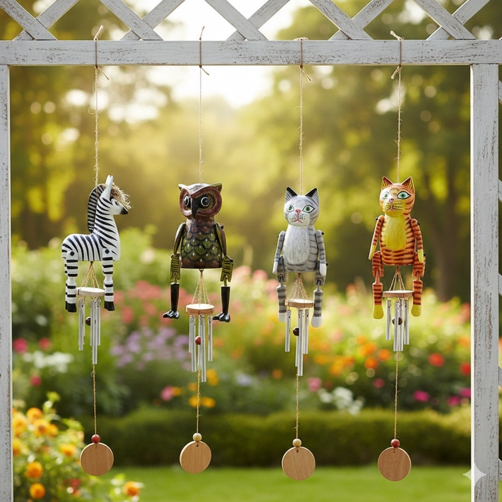 Ahşap Hayvan Figürlü Rüzgar Çanı Model 2Ürün İçeriğiAhşap Hayvan Figürlü Rüzgar Çanı Model 2, doğanın sıcaklığını ve hayvanlar aleminin neşesini yaşam alanlarınıza taşıyor. Doğal ahşap zemin üzerine işlenmiş renkli zebra, baykuş, kedi ve kaplan gibi figürlerle bezeli bu çan, rüzgarın her esintisinde metal çanları sayesinde huzur veren melodiler yayar. Hem çocuk odaları hem de balkon veya bahçeler için doğal ve canlı bir dekorasyon çözümüdür.Ürün ÖzellikleriÖzellikAçıklamaModelModel 2MateryalDoğal Ahşap ve Metal ÇanlarFigürlerZebra, Baykuş, Kedi, Kaplan (Karışık Gönderim)Kullanım AlanıBahçe, Balkon, Teras, Çocuk Odası ve İç MekanFonksiyonRüzgarla Hareket Eden Melodik Ses SistemiTasarımRenkli, Sevimli ve Doğal GörünümNotDesenler stok durumuna göre karışık gönderilmektedir.Paket İçeriği1 Adet Ahşap Hayvan Figürlü Rüzgar Çanı Model 2