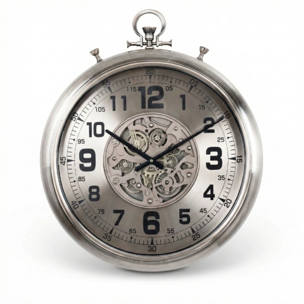 ÇARKLI DUVAR SAATİ 52 CMÜrün Özellikleri52 cm çapındaki çarklı duvar saati, büyük boy tasarımı ve dikkat çekici mekanik çark detaylarıyla bulunduğu ortamda güçlü bir dekoratif etki oluşturur. Endüstriyel ve modern tarzı bir araya getiren bu model, salon, ofis, kafe, restoran ve loft tarzı mekânlar için ideal bir tercihtir. Geniş kadranı sayesinde saat kolayca okunabilirken, iç kısımdaki çarklı görünüm dekorasyona dinamik ve premium bir hava katar. Sağlam gövde yapısı uzun ömürlü kullanım sunar ve dengeli çalışan mekanizması sayesinde sessiz bir performans sağlar. Hem fonksiyonel hem de estetik bir duvar dekoru arayan kullanıcılar için şık ve iddialı bir saat modelidir.Paket İçeriği1 adet Çarklı Duvar Saati 52 cm