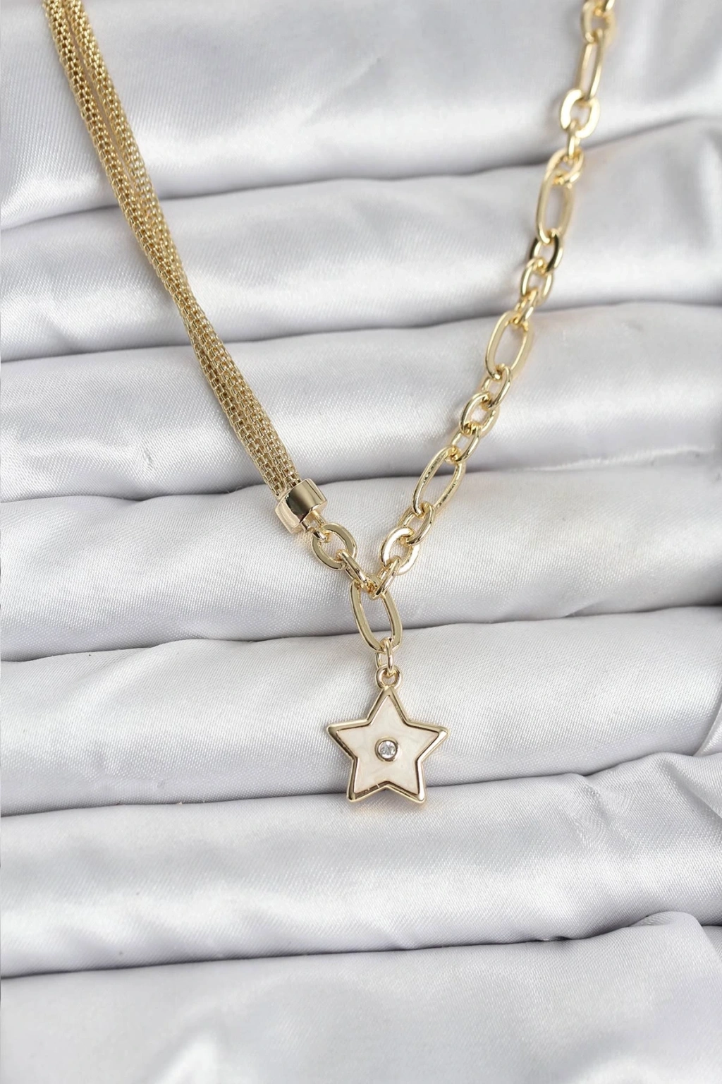 Gold Renk Pirinç Yıldız Model Kadın Kolye