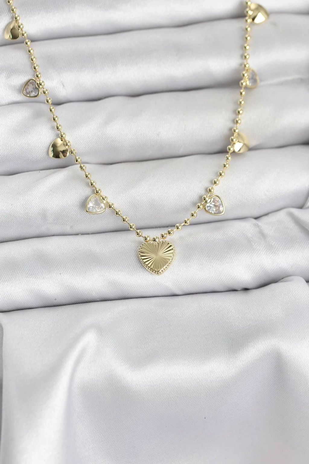 Pirinç Gold Renk Kalp Model Kadın Kolye