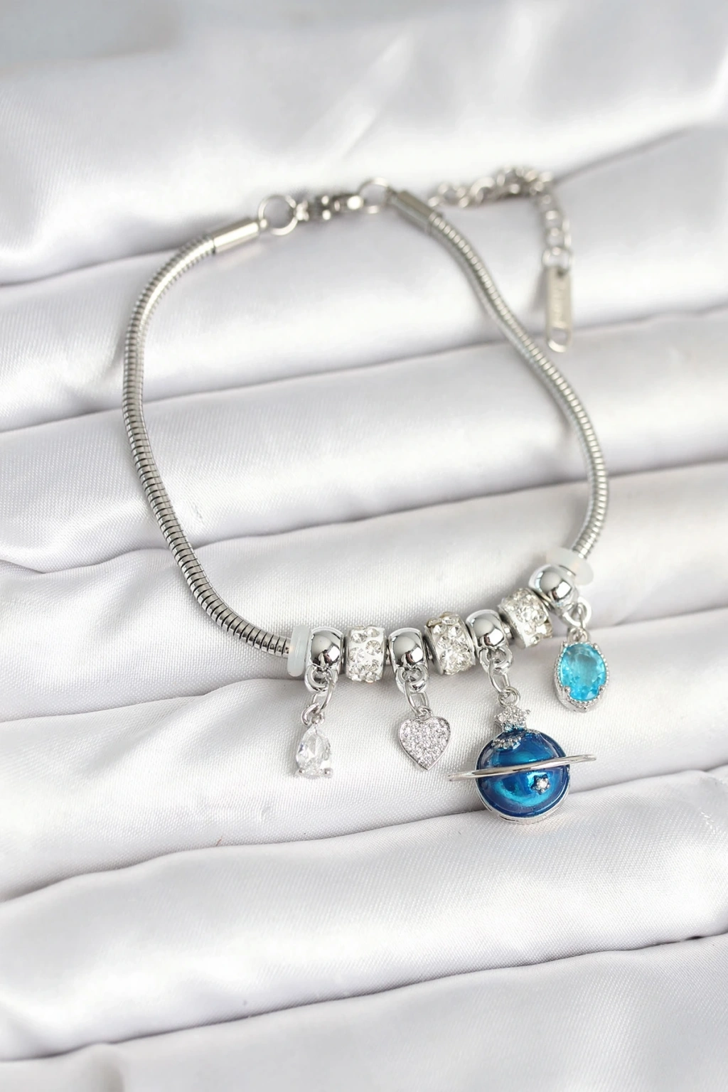 Pirinç Gümüş Renk Dünya Charmlı Kadın Bileklik