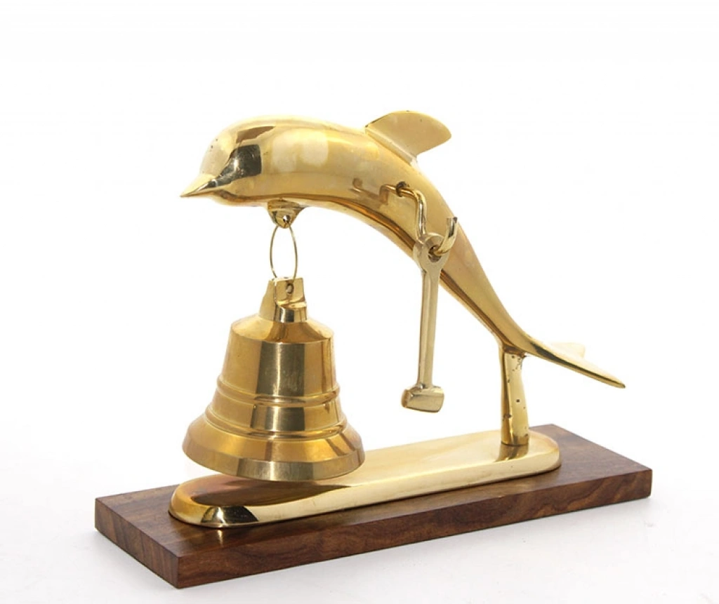 PİRİNÇ YUNUS BALIĞI TASARIMLI ÇANÜrün ÖzellikleriPirinç Yunus Balığı Tasarımlı Çan, denizlerin neşesini ve zarafetini yaşam alanlarınıza taşıyan, el işçiliği detaylarıyla zenginleştirilmiş son derece estetik bir dekorasyon objesidir. 17x23 cm boyutlarındaki bu özel tasarım, suyun üzerinde zıplayan bir yunus figürünün ağzında taşıdığı şık bir çanı betimleyerek masanıza dinamik bir hava katar. Pirinç görünümlü kaliteli malzeme kullanımı sayesinde antik gold ışıltısını yansıtan ürün, dayanıklı yapısıyla nesiller boyu saklanabilecek bir koleksiyon parçası niteliği taşır. Yunus figürünün altına yerleştirilen dikdörtgen formdaki ahşap stand, parlak metalik yüzey ile doğal dokunun kusursuz uyumunu sunarken ürünün dengeli ve prestijli şekilde sergilenmesini sağlar. Bu dekoratif yunus çanı, hem işlevsel bir zil olarak hem de marin temalı mekanlar, çalışma odaları veya vitrinler için göz alıcı bir aksesuar olarak tercih edilebilir. Deniz tutkunları ve farklı tasarımlardan hoşlananlar için unutulmaz bir hediyelik eşya seçeneği olan bu biblo, geleneksel denizcilik figürlerini modern bir sanat anlayışıyla birleştirir. Bulunduğu her ortamda dikkat çekici bir odak noktası oluşturan bu pirinç masa çanı, kaliteden ödün vermeyenler için tasarlanmıştır.Ürün Teknik ÖzellikleriÖzellikAçıklamaÜrün AdıPirinç Yunus Balığı Tasarımlı ÇanBoyut17x23 cmMalzemePirinç Görünümlü Kaliteli Metal ve Ahşap KaideTasarımYunus Balığı Figürlü - Hareketli Çan MekanizmalıRenkParlak Pirinç / Antik Gold ve Koyu AhşapStilMarin / Vintage / DekoratifKullanım AlanıMasa Üstü, Ofis, Resepsiyon, Ev DekorasyonuPaket İçeriği1 Adet Pirinç Yunus Balığı Tasarımlı Çan