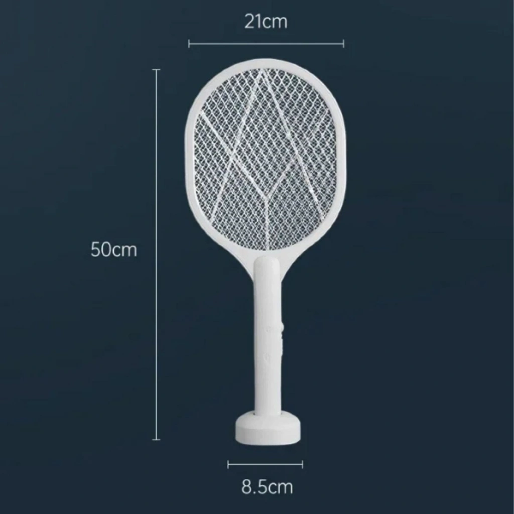 ŞARJLI STANDLI SİNEK ÖLDÜRÜCÜ RAKETÜrün ÖzellikleriŞarjlı standlı sinek öldürücü raket, 5W güçlü performansı ve UV mor ışık teknolojisi sayesinde sinek ve uçan böcekleri hızlı ve etkili şekilde yakalamak için tasarlanmıştır. UV mor ışık, sivrisinekleri ve haşereleri kendine çekerken yüksek voltajlı tel örgü temasıyla anında etkisiz hale getirir. Şarj edilebilir bataryası sayesinde kabloya ihtiyaç duymadan ev içinde ve dış mekânlarda rahatça kullanılabilir. Masaüstü standı ile sabit kullanım imkânı sunarken, el tipi yapısı sayesinde taşınabilir olarak da kullanılabilir. Hafif ve ergonomik tasarımı uzun süreli kullanımlarda bile konfor sağlar. Sessiz ve gürültüsüz çalışma özelliği sayesinde gece kullanımına uygundur. Kimyasal içermeyen yapısı ile çevre dostu ve güvenli bir sinek kontrol çözümü sunar. Ev, ofis, balkon, bahçe ve kamp alanlarında pratik ve etkili kullanım için idealdir.Paket İçeriği1 adet şarjlı sinek öldürücü raket