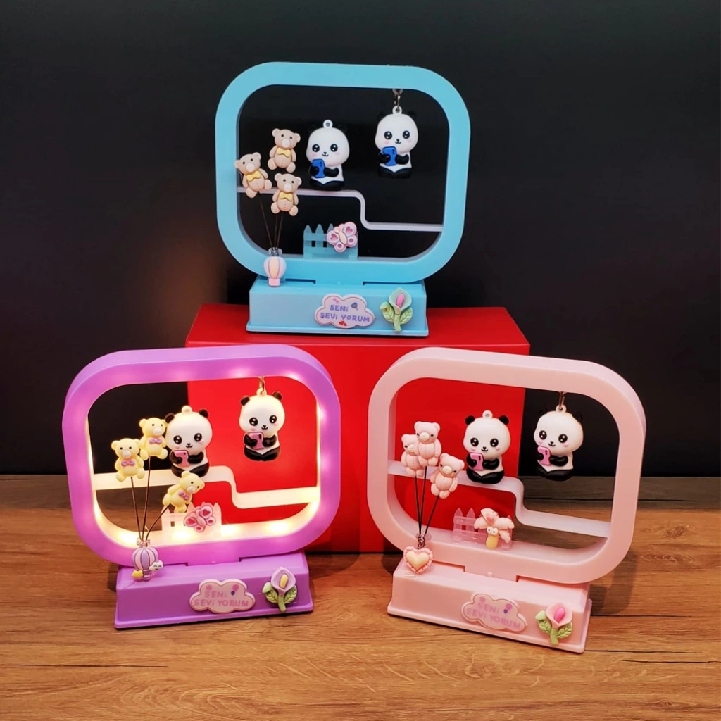 SEVİMLİ MÜZİKLİ PANDA DEKORATİF IŞIKÜrün ÖzellikleriSevimli müzikli panda dekoratif ışık, kaliteli plastik malzemeden üretilmiştir. Üzerindeki dekoratif LED ışıklar karanlıkta hoş bir ambiyans oluşturur. Müzikli özelliği sayesinde çalıştırıldığında hoş bir melodi çalar. Gece lambası olarak da kullanılabilir. Alt kısmında "Seni Seviyorum" yazısı bulunan panda biblo, hediye ve dekor amaçlı tercih edilebilir. 3 adet AAA pil ile çalışır (piller pakete dahil değildir). Renk seçeneği bulunmamakta olup görsellerdeki renklerden biri rastgele gönderilir. Ürün 16.5 cm boyutundadır.Paket İçeriği1 Adet Sevimli Müzikli Panda Dekoratif Işık