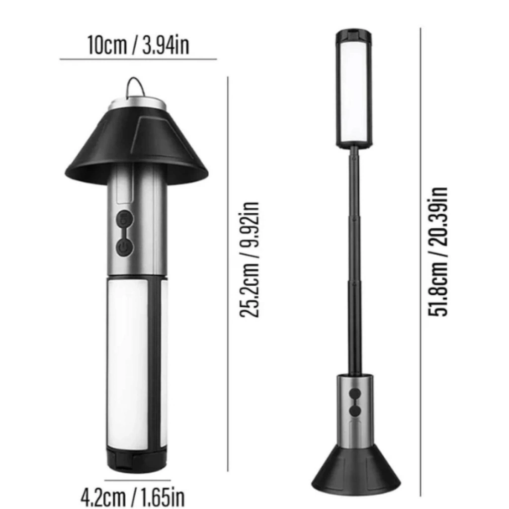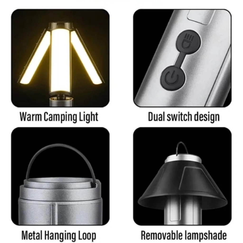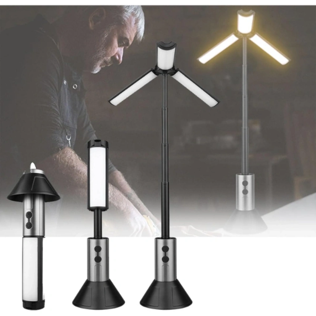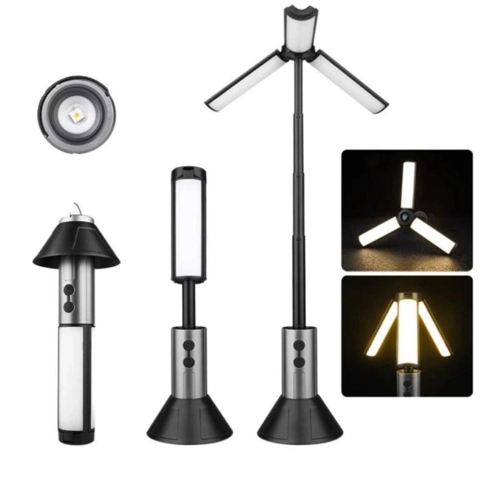TELESKOPİK ŞARJ EDİLEBİLİR ÇADIR KAMP IŞIĞIÜrün ÖzellikleriTeleskopik şarj edilebilir çadır kamp ışığı, kamp, doğa yürüyüşü ve açık hava aktivitelerinde güvenilir aydınlatma sunmak üzere tasarlanmış çok işlevli bir üründür. Birinci sınıf ABS ve PVC malzemelerden üretilen gövdesi, zorlu dış ortam koşullarına karşı dayanıklılık sağlarken hafif yapısıyla kolay taşınabilirlik sunar. Teleskopik yapısı sayesinde el feneri, masa lambası ve zemin lambası olarak kullanılabilen ürün, farklı ihtiyaçlara hızlıca uyum sağlar. Sahip olduğu 270 derece ayarlanabilir lamba kanatları, yumuşak ve homojen ışık dağılımı sağlayarak gece okumaları ve geniş alan aydınlatmaları için idealdir. Yakınlaştırılabilir el feneri modu ile hem yakın hem de uzak mesafelerde etkili görüş sunar. Dahili gizli kanca detayı sayesinde çadırlara veya ağaç dallarına kolayca asılabilir. Type-C hızlı şarj arayüzü ile pratik şarj imkânı sunan bu model, şarj edilebilir kamp ışığı arayanlar için fonksiyonel ve uzun ömürlü bir çözümdür.Ürün Teknik Özellikleri Özellik Açıklama Ürün Adı Teleskopik Şarj Edilebilir Çadır Kamp Işığı Malzeme Birinci sınıf ABS ve PVC Aydınlatma Modu El feneri, masa lambası, zemin lambası Ayarlanabilirlik 270° ayarlanabilir lamba kanatları Direk Yapısı 4 bölümlü teleskopik uzatma Şarj Girişi Type-C hızlı şarj Dayanıklılık Toza ve su sıçramasına dayanıklı Kullanım Alanı Kamp, çadır, açık hava, acil durum Paket İçeriği1 adet teleskopik şarj edilebilir çadır kamp ışığı