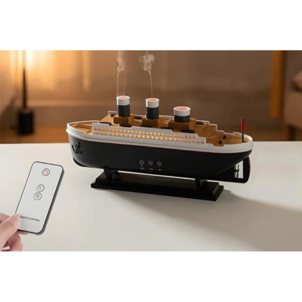TİTANİK GEMİ TASARIMLI HAVA NEMLENDİRİCİSİÜrün ÖzellikleriTitanik gemi tasarımlı hava nemlendiricisi, dekoratif görünümüyle ortamınıza şıklık katarken aynı zamanda havayı nemlendirerek ferah bir atmosfer sunar. 250 ml kapasitesi ile uzun süreli kullanım imkanı sağlar. Uzaktan kumanda ile kolayca kontrol edilebilir ve aromatik yağlar ile kullanıldığında ortama hoş kokular yayarak rahatlatıcı bir deneyim sunar. RGB ışıklı yapısı sayesinde gece lambası olarak da kullanılabilir. 30 cm uzunluğunda, 14.1 cm yüksekliğinde ve 7.1 cm genişliğinde olan bu ürün, hem işlevsel hem de estetik bir tasarıma sahiptir.Paket İçeriği1 adet Titanik Gemi Tasarımlı Hava Nemlendiricisi