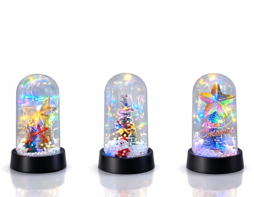 YILBAŞI TEMALI IŞIKLI DEKORATİF CAM FANUS - MODEL 10Ürün ÖzellikleriYılbaşı Temalı Işıklı Dekoratif Cam Fanus - Model 10, yeni yıl atmosferini yaşam alanlarına taşıyan şık ve kompakt bir dekorasyon ürünüdür. 15x8 cm ölçüsündeki ideal boyutu sayesinde masa üstü, sehpa, çalışma masası ve vitrin dekorasyonlarında rahatlıkla kullanılabilen ışıklı cam fanus, cam kubbe tasarımı ile estetik bir görünüm sunar. İç kısmında yer alan yılbaşı temalı figür ve ağaç detayları ile öne çıkan yılbaşı dekoratif fanus, çok renkli ışık efektleri sayesinde loş ortamlarda sıcak bir ambiyans oluşturur. Siyah tabanlı yapısı sayesinde dengeli ve sabit bir duruş sergileyen dekoratif yılbaşı süsü, hem ev hem de ofis ortamlarında yeni yıl konseptini tamamlayan zarif bir tamamlayıcıdır. Küçük boyutuna rağmen dekoratif etkisi yüksek olan tasarımı ile farklı alanlarda pratik kullanım sağlar.Ürün Teknik Özellikleri Özellik Açıklama Ürün Adı Yılbaşı Temalı Işıklı Dekoratif Cam Fanus - Model 10 Model Model 10 Ölçü 15 x 8 cm Tema Yılbaşı Özellik Işıklı Paket İçeriği1 Adet Yılbaşı Temalı Işıklı Dekoratif Cam Fanus - Model 10