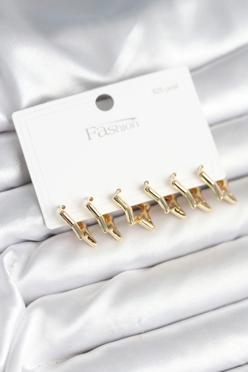 Yıldız Model Gold Renk 925 Ayar Gümüş Çivili Kadın Küpe Seti