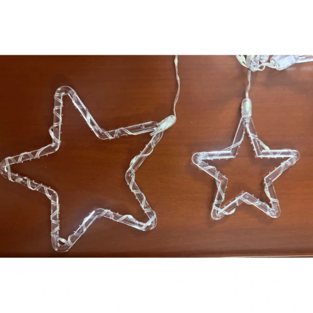 YILDIZ PERDE LED 10 SAÇAKLIÜrün ÖzellikleriYıldız Perde LED ışık sistemi, sıcak ışığı ve zarif yıldız figürleriyle iç ve dış mekân dekorasyonlarında büyüleyici bir atmosfer oluşturmak için tasarlanmıştır. Toplamda 10 saçaktan oluşan bu modelde 5 büyük ve 5 küçük yıldız bulunur. Sıcak sarı LED aydınlatması perde, duvar, pencere, balkon, vitrin ya da özel gün süslemelerinde etkileyici bir ışık yayarak dekorasyonunuzu tamamlar. Fişli ve eklemeli yapısı sayesinde birden fazla set birbirine kolayca bağlanabilir, dekorasyon alanı genişletilebilir. 8 farklı ışık modu ile yanıp sönme, hızlı-kayma, sabit ışık gibi çeşitli efektler arasından dilediğinizi seçerek ortamın ambiyansını istediğiniz gibi değiştirebilirsiniz. Dış mekânda da kullanılabilen dayanıklı yapısı ile yılbaşı, parti, kutlama ve günlük dekorasyonlarda ideal bir üründür.Paket İçeriği1 Adet Yıldız Perde LED