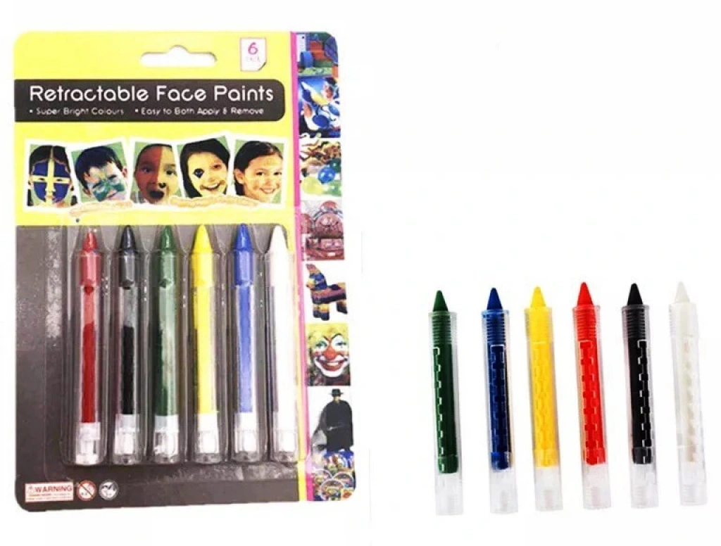 Yüz Boyama Seti Kalemli 6 Renk Bu 6 renkli yüz boyama seti kalemleri ile partilerde, karnavallarda ve özel kutlamalarda kolay ve eğlenceli bir şekilde yüz boyama keyfini yaşayın.Ürün Özellikleri6 renk mevcuttur (yeşil, sarı, kırmızı, mavi, siyah, beyaz)Kullanımı kolay ve pratikCilde zarar vermez Su ve sabun ile kolayca temizlenebilir.Paket İçeriği1 Adet 6'lı Kalem Seti